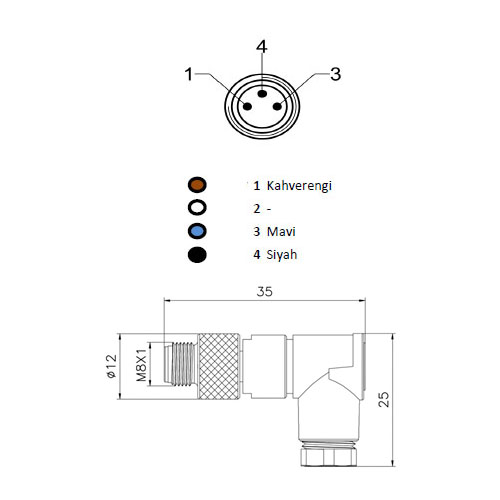 | M8 3-PİN ERKEK DİRSEK | |