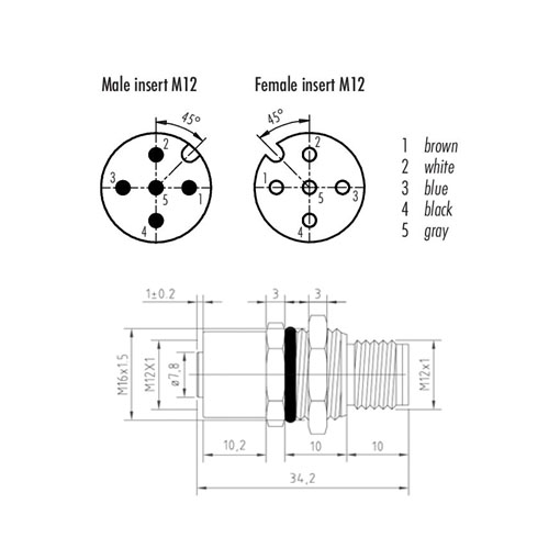 M12 A Kod Erkek Dişi Düz Panel Adaptör
