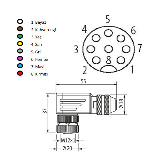 Elektrik Bağlantısı 8 pin / A Kodlu