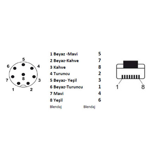 | KABLO TİPİ | 8 Pin Cat7 2*2*2*0,22 |